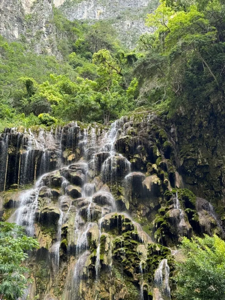 Although the hot springs are the main attractive, my favorite part of Grutas de Tolantongo is the thermal tunnel. This unique experience is like nothing I’ve seen before. Behind one of the waterfalls is a 40 meter long tunnel with warm water seeping from all around. It’s dark so be sure to wear a headlamp and it’s slippery so wear water shoes with good grip. You’ll be walking in knee-deep and waist-deep water as you make your way through this narrow tunnel that feels like a Turkish bath. Even with water shoes, I did slip and fell once, so be very careful in the tunnel.