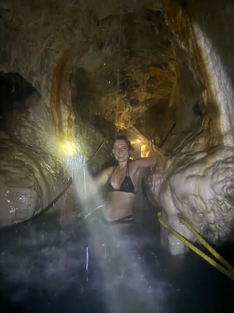 Plus there are rules of what you can and cannot bring into the hot springs, so it was nice to have the tour company make little backpacks with reusable water bottles, towels, headlamps for the tunnel and cave, and waterproof phone cases. My over-prepared self packed everything, not realizing they would take care of everything for us. Everything you can’t bring or don’t need stays safely in the van.