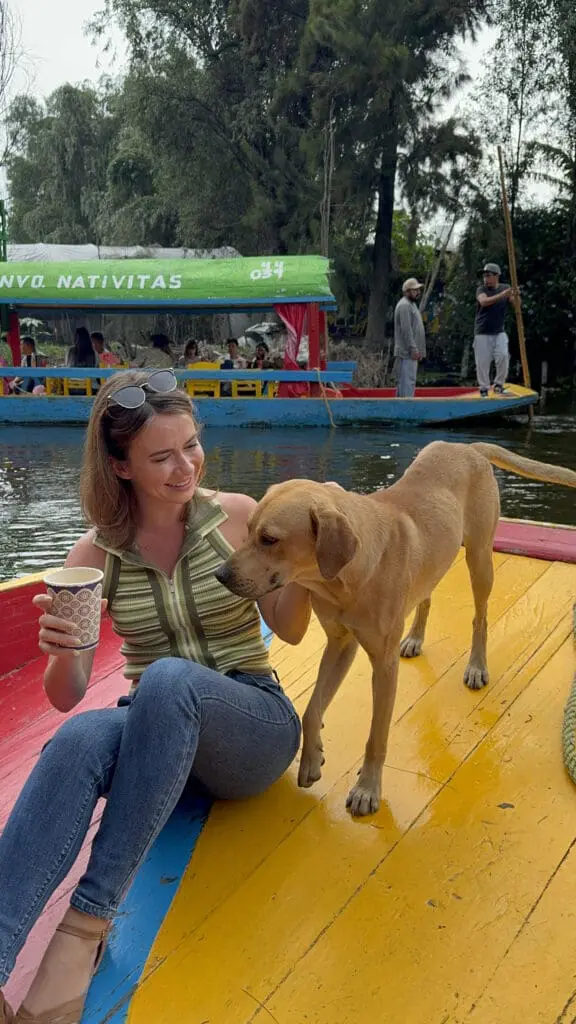 Although it’s nearly an hour south of the heart of Mexico City, the drive is worth it to experience a fun afternoon in Xochimilco. I ended up taking an Uber and going alone since my godsister, despite everyone telling her how amazing Xochimilco is, did not want to go. I was able to get on an unlimited drink, 2-hour tour and ended up having a blast and made some new friends too, including a four-legged one who jumped from another boat onto ours!