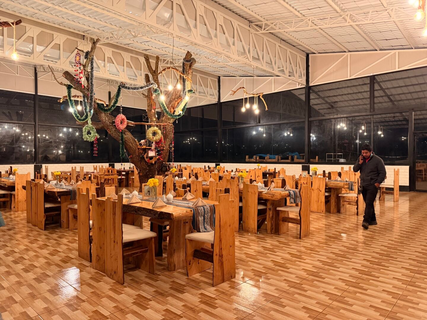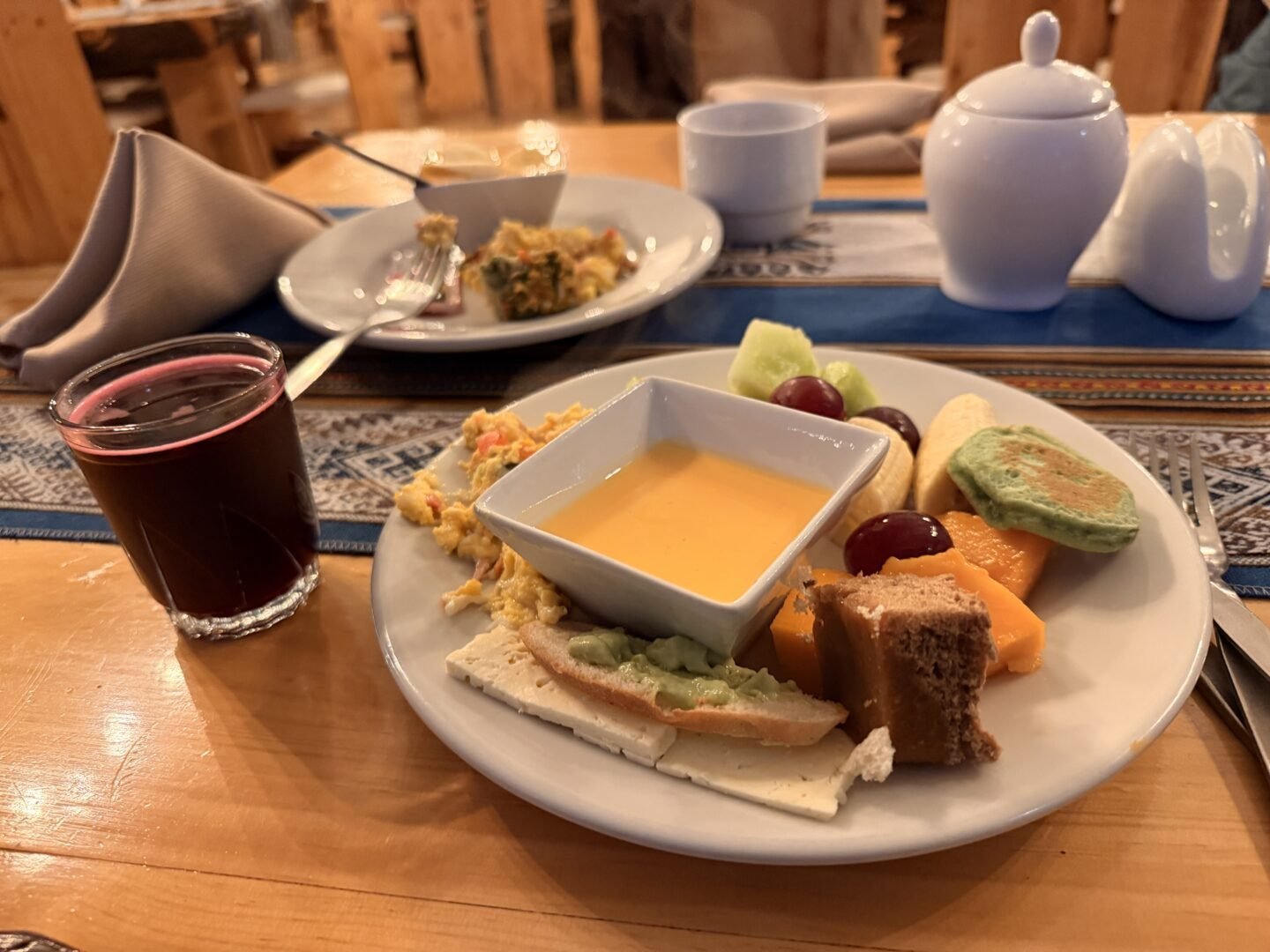 After picking up the rest of our group (about 12 people total), we started the drive toward Cusipata, where breakfast is served. The two-hour drive is the perfect time for a nap before arriving at the newly constructed, massive dining hall for breakfast in Cusipata.