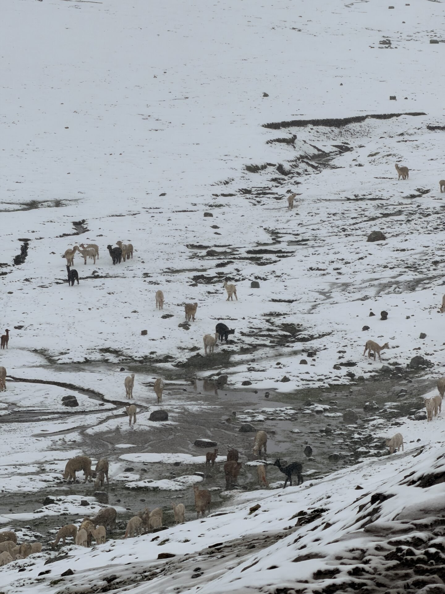 Despite it being far colder than expected and that we would see a rainbow mountain, the scenery was still incredible with llamas wandering the snowy hillsides.