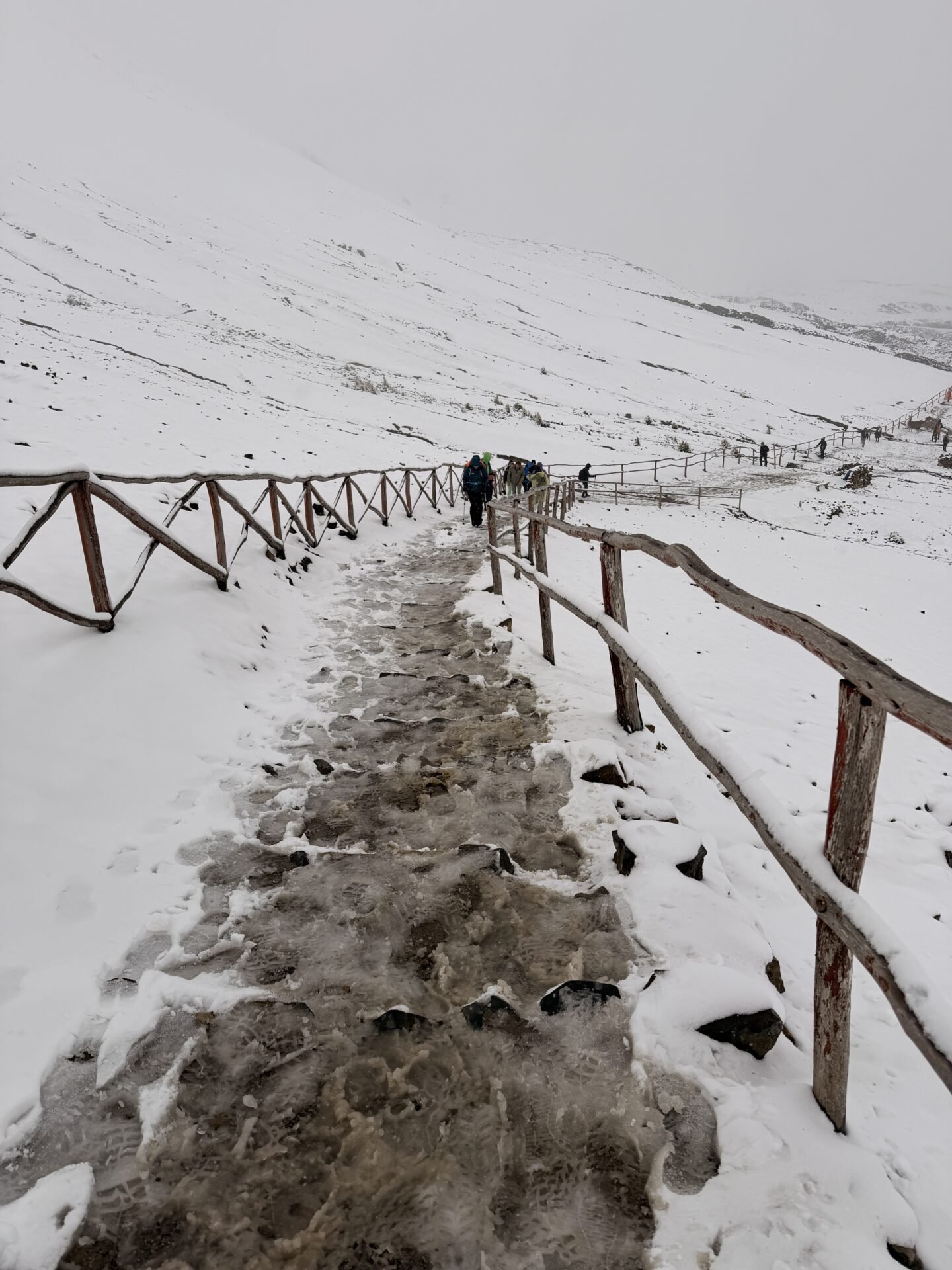 At 16,400 ft elevation, the two-hour hike is difficult enough without icy trails.