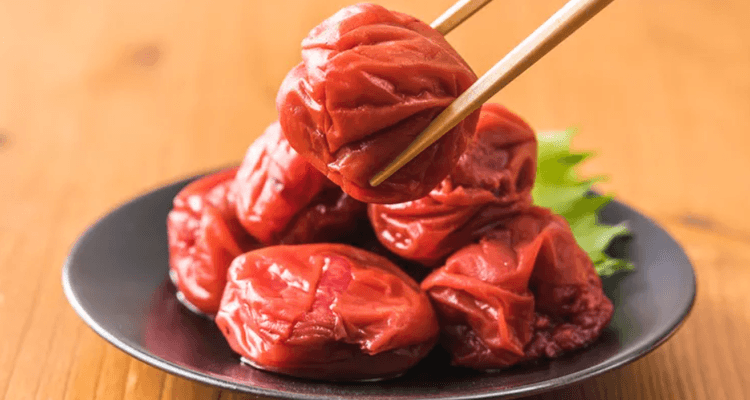 “A salty and tart Japanese condiment made from unripened plums pickled in a brine.”
