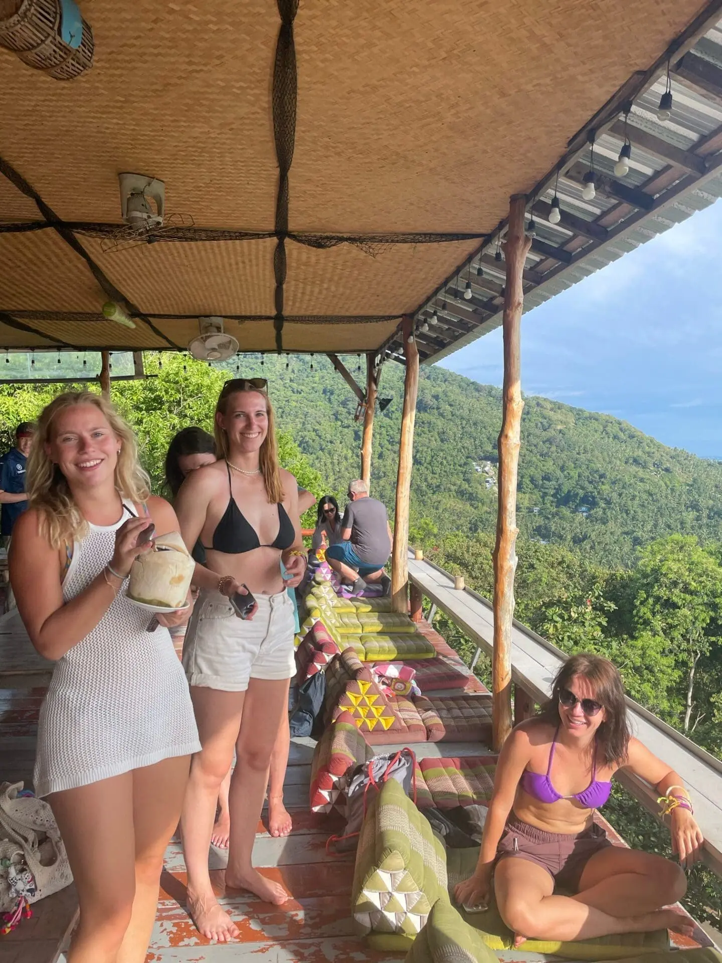 Long travel day alert: Early wake-up at sunrise. Longtail boat back to docks, then van, then ferry to Koh Phangan. Nearly 8 hours total. Bring a jacket for the ferry—it gets freezing! ❄️