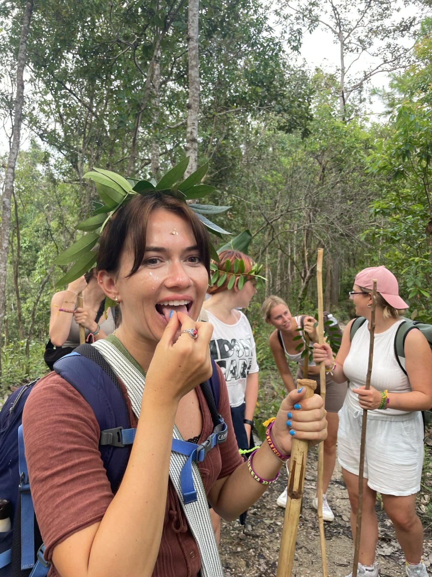 Jungle trek: Leave the songthaew and hike through jungle. The Tour guide makes everyone jungle crowns from leaves! Learn about bugs and plants. EAT LEMON ANTS OFF LEAVES—they taste exactly like lemons!