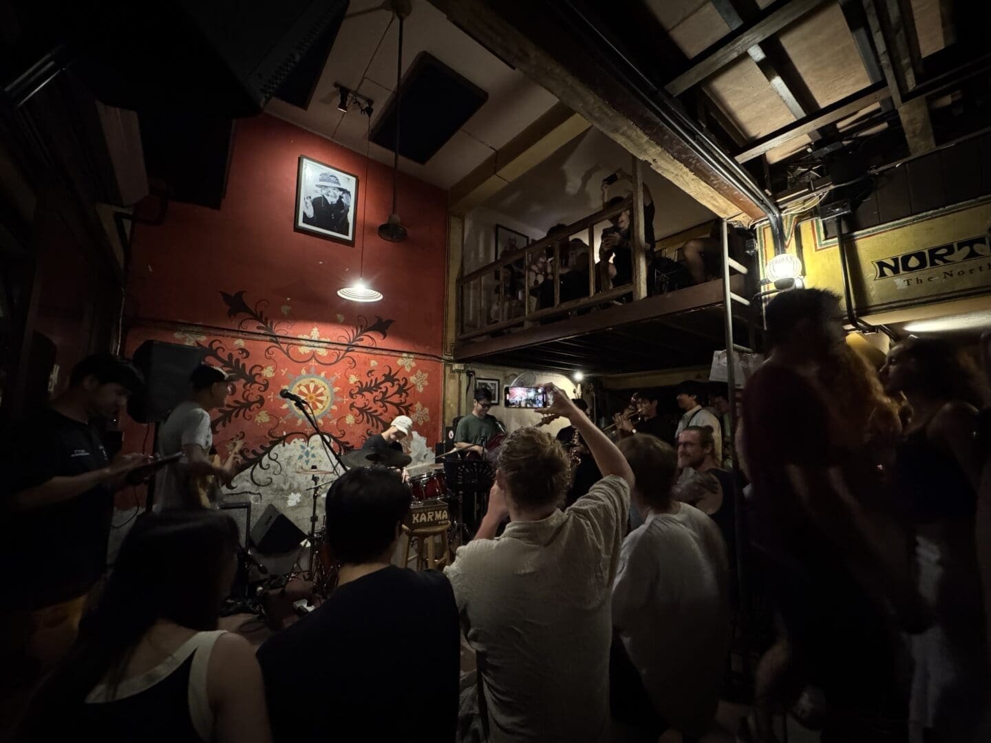 Nightlife: Everyone else was tired (boo!), so I went with just our group leader to North Gate—a famous jazz bar. MUST-DO in Chiang Mai! People pour out onto the street trying to get in. Energy is incredible. Eventually everyone’s standing on chairs and benches dancing to live music. You feel like a main character in a movie. Shout out to our group leader Lucy for always having the best recommendations everywhere we go!