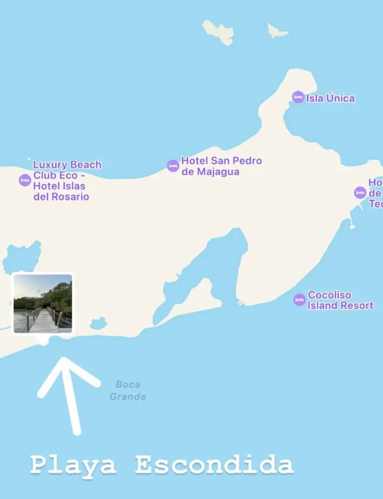 It takes roughly an hour long boat ride from Muelle de la Bodeguita right outside of Cartagena’s walled city. The boats only leave in the morning, with each hotel having its own boat. If you do a day trip, you’ll catch a boat around 3pm back to Cartagena.