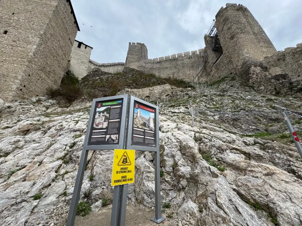 Despite being in good condition and well preserved, it seems to be less popular than Golubac. For only 300 dinars (roughly $3), you can access Ram Fortress and explore on your own, listening to an audio guide on your phone by using the QR codes hung around the fortress.