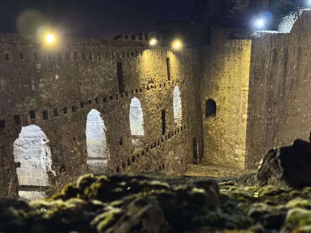 We went after nightfall, so with street lamps and spotlights illuminating the fortress, there was a spooky feel that made me giddy with excitement. This was made all better with the on-and-off-again drizzle of rain we had been experiencing all day. Who knows what ghosts could have been amongst us as we explored the former castle!