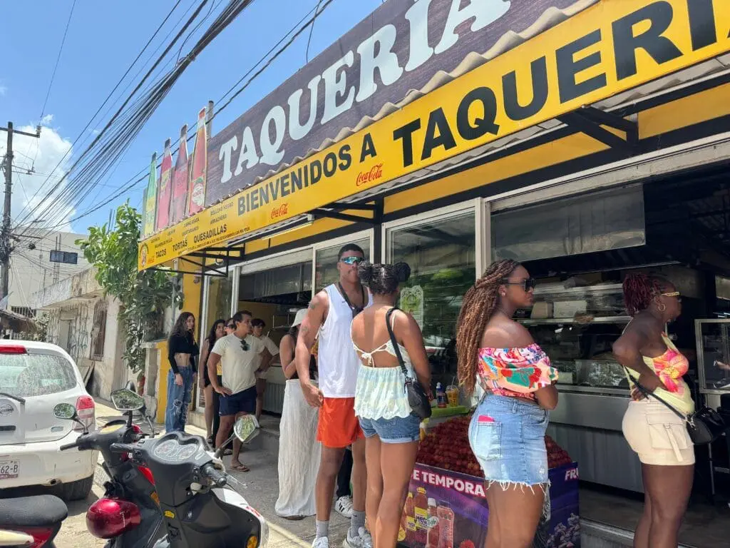 We first heard about Taquería Honorio Tulum from our scuba diving guide, who didn’t hesitate for a second when we asked for the best place to eat in town. This place is beloved by both locals and travelers, and the line out the door proves it. The atmosphere is exactly what you want from a no-frills, authentic taco joint: simple tables packed into an open-air space, no AC, just fans working overtime and the mouthwatering smell of sizzling meat greeting you as you wait on the sidewalk.